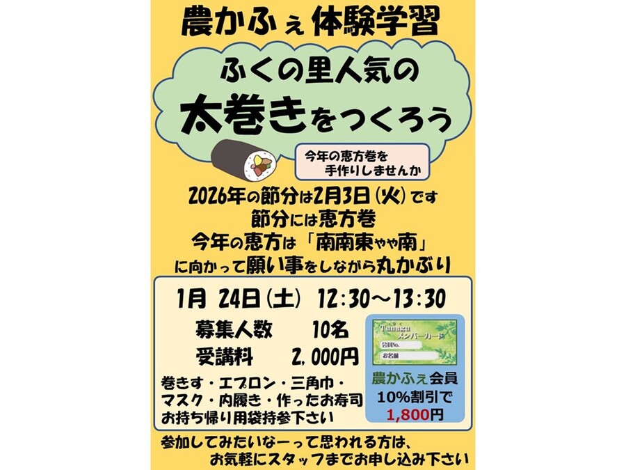 「ふくの里人気の太巻きをつくろう」 講座 ふくの里