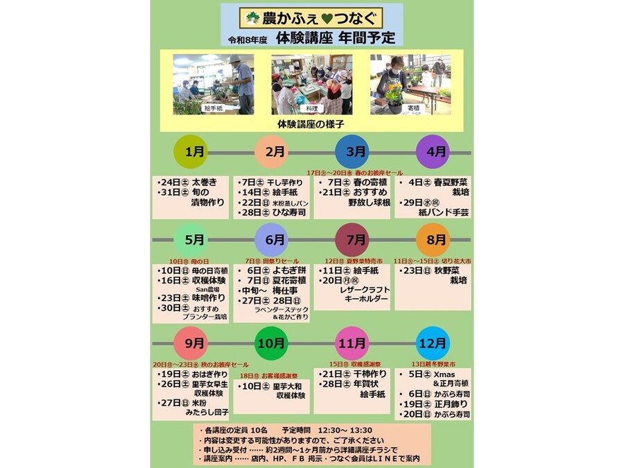 令和8年度 農かふぇ体験学習 年間予定表 ふくの里