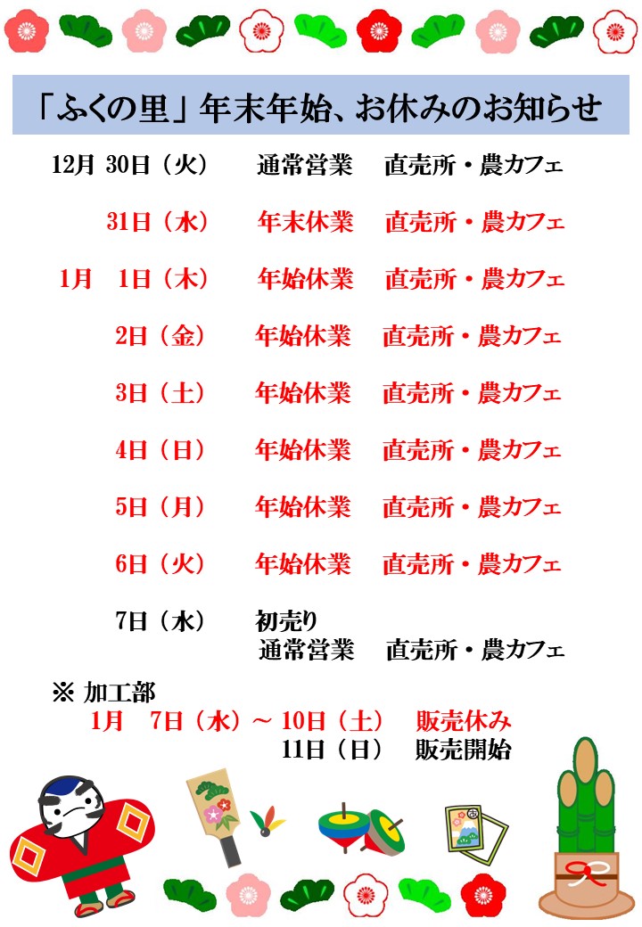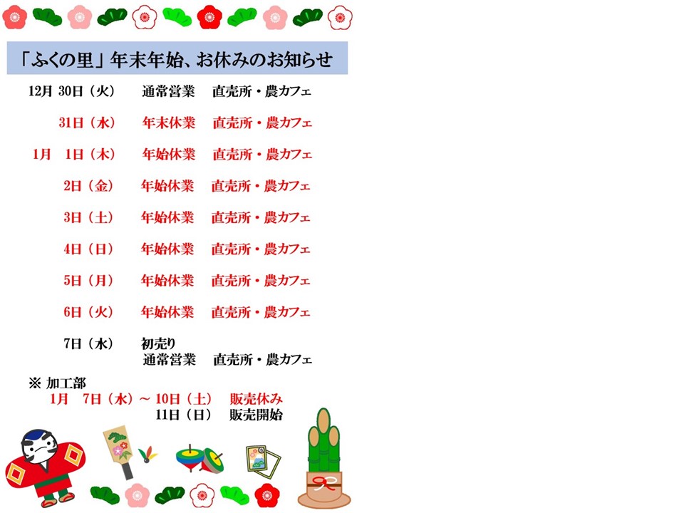 | 直売所 | 年末年始 |